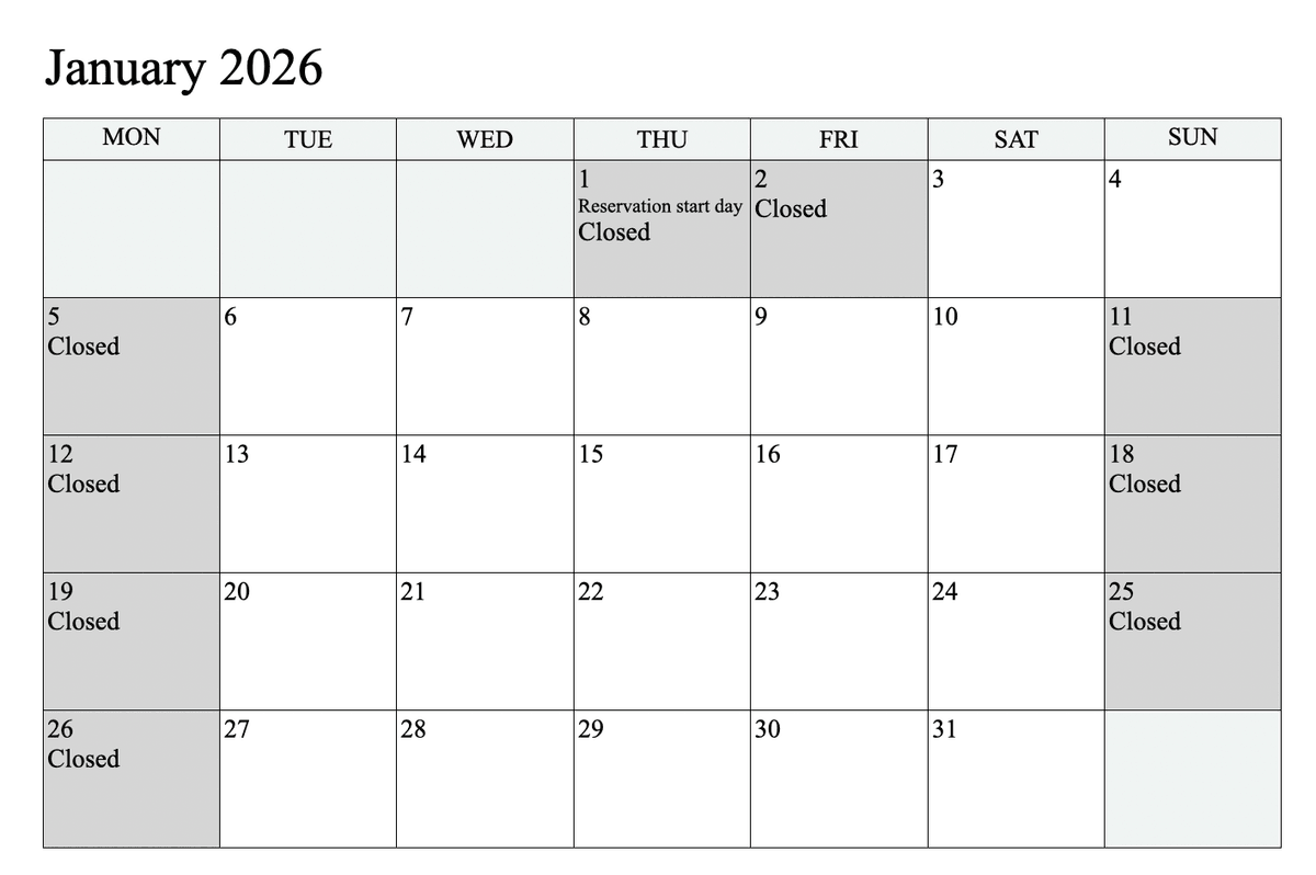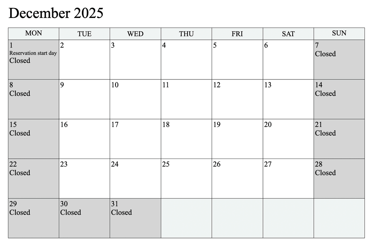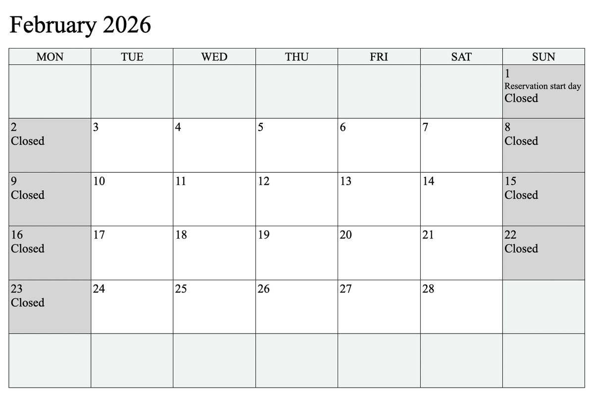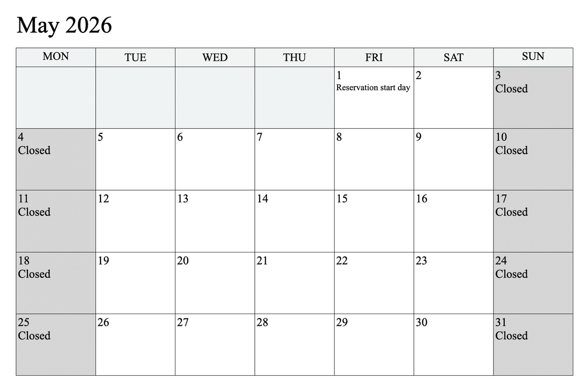 ※不定休となる場合がございます。詳しくはカレンダーをご参照ください。